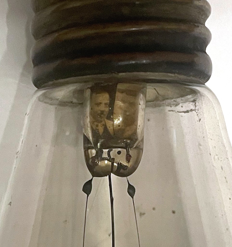 C.1904 Shelby RAY 16cp mushroom shape carbon filament light bulb, similar to the centennial bulb at the Livermore CA fire department station may-2021