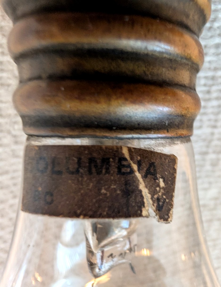 Westinghouse-Edison combination base anchored carbon filament light bulb with porcelain ins. marked D.G. & E. Co. may-2021