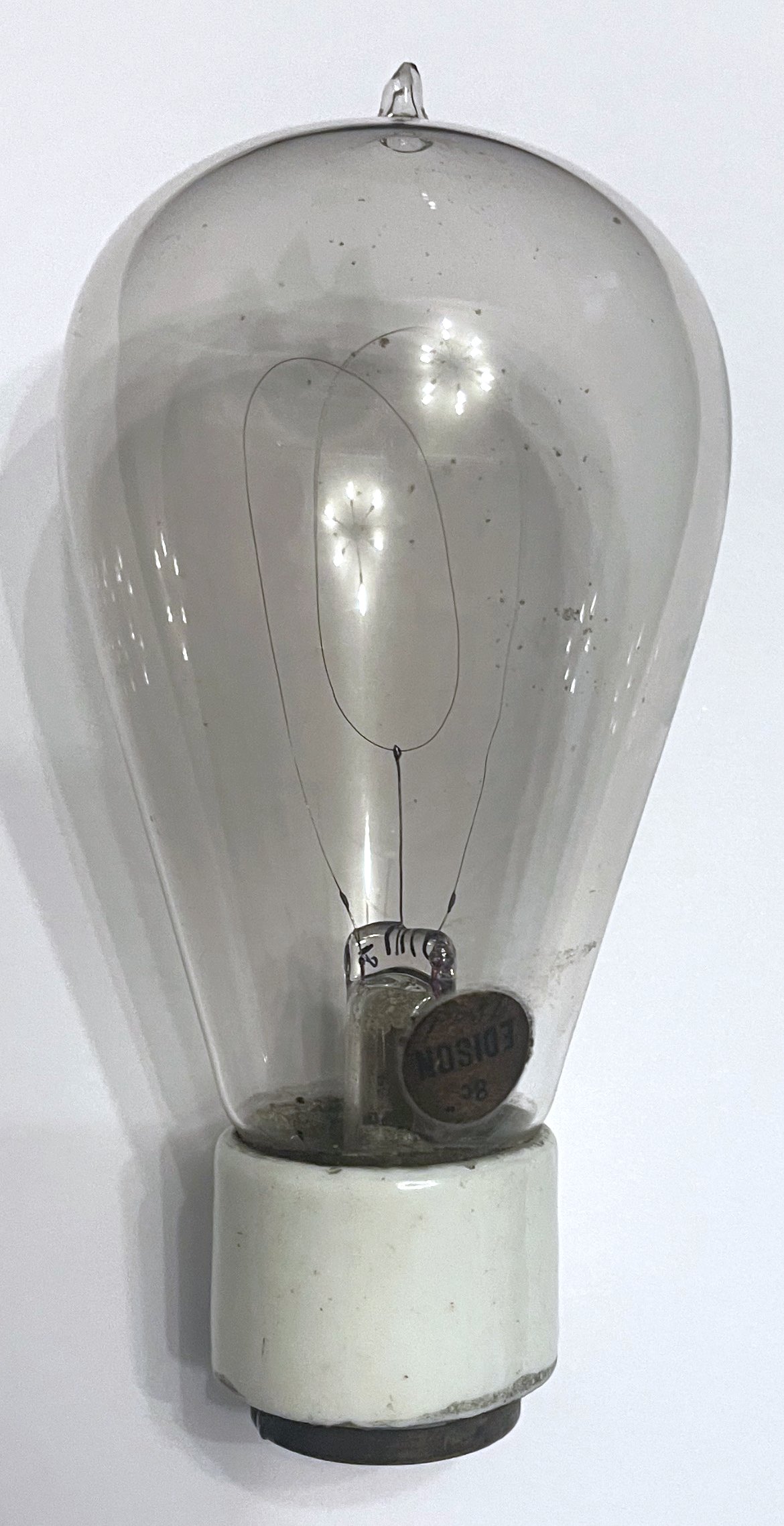 C.1889 New Type Edison bamboo filament light bulb pat. feb-14-1880 16cp 117v by Mark Richichi sep-2020